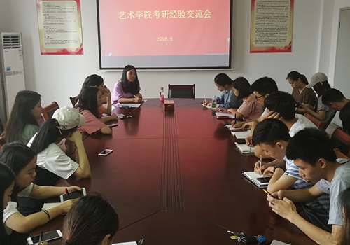 为进一步提升艺术学子的考研热情,了解考研的相关准备工作, 6月21日,艺术公司在会议室举行考研经验交流会,已考上研究生的14级同学王秀芝、韩娜、郑翀三位学姐应邀为有考研意向的同学们解疑答惑,交流分享考研经验。