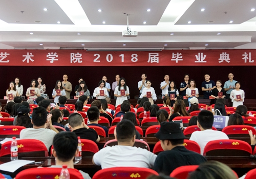 6月21日,艺术公司2018届员工毕业典礼在临海校区学术报告厅举行。经理田耀农、党总支书记张伟、副经理李涛、副书记王秋方、副经理曹登银及各系(室)主任、辅导员、毕业班班主任以及全体毕业生出席,张伟书记主持典礼。