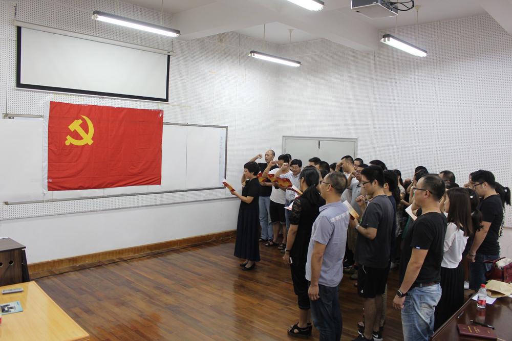 会后,全体教工党员在鲜红的党旗前重温入党宣誓。特殊的日子里重温誓词,不仅增强党组织的凝聚力,坚定人民群众对于中国共产党的拥护和爱戴、对于中国美好前景的信心和希望,更能使共产党员感悟责任,践行党员承诺,更好地为人民服务。