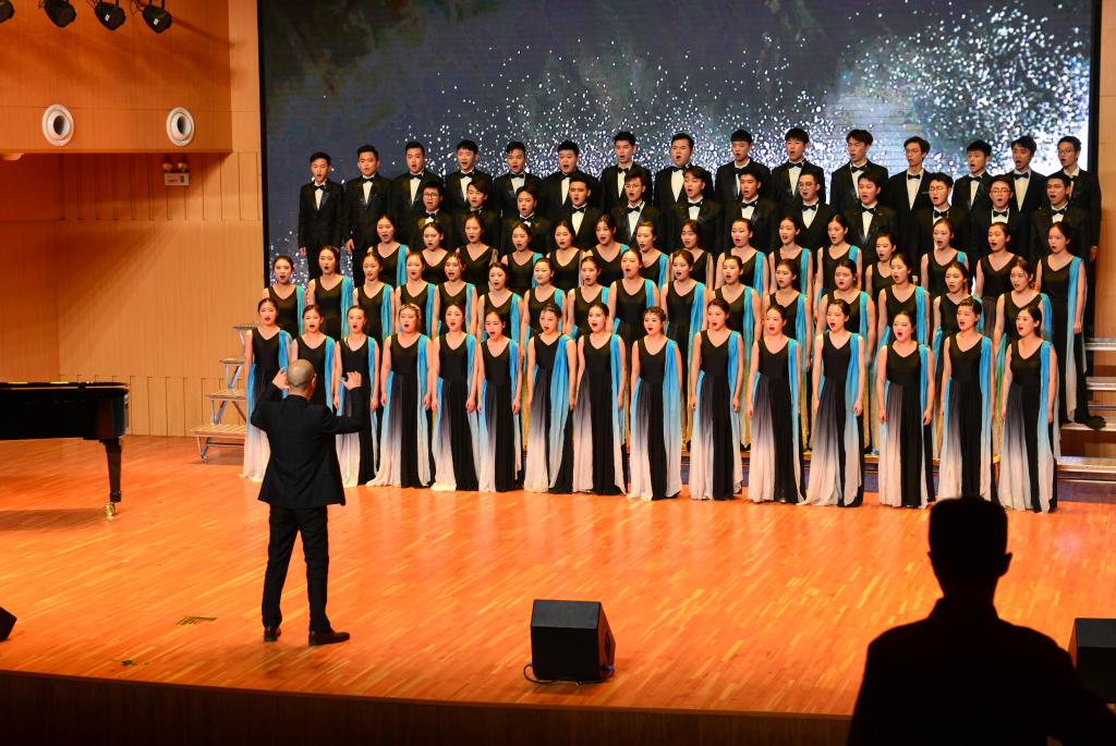 演出随着张艺峰老师刚劲有力的指挥手势正式开始,一曲合奏《金蛇狂舞》将浓厚的中国元素和古典西方交响有机融合,不仅使观众享受到纯正的中国风情,更是体味了一番优雅的西洋音乐。台州市二胡名家张觉平和扬琴伴奏詹酥酥联袂带来的《一枝花》将中国的传统文化艺术演绎的淋漓尽致,博得现场观众的阵阵掌声。男生表演唱《骏马奔驰保边疆》欢快高亢,庄重豪迈,仿佛要将观众的心都带到那广阔的大草原上去,教人流连忘返。唢呐独奏《百鸟朝凤》与双排键独奏《春节序曲》一静一动,传统与流行的对比,令人印象深刻。每一个音符的跳动都让现场观众尽情徜徉于音乐的海洋中。乐舞《不忘初心》雄壮豪迈,致敬红军长征精神,奏响新时代砥砺前行的乐章。音乐会在这荡气回肠的歌伴舞中完美落幕。