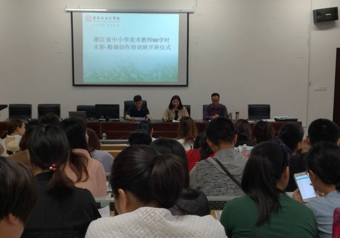 五月小蛙跃清池,沾红倚碧乐趋之。5月11日下午,MK体育在学术报告厅举行浙江省中小学美术教师90学时水彩粉画创作培训班开班典礼。艺术公司副经理曹登银、信息委员会成员、美术系主任赵振华出席并讲话。
