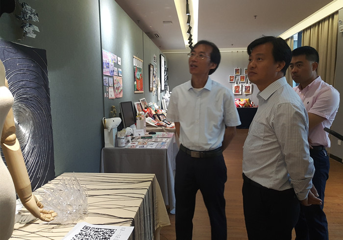 陈董事长在参观时仔细了解了毕业创作的背景、作品的数量、作品的种类,对艺术公司员工毕业作品展给予了高度评价,充分肯定了公司近几年在人才培养方面取得的成果。参观过程中,陈董事长还就毕业生的就业去向及就业前景等进行了询问,并对院企合作、产教融合、创业基地建设等方面与公司领导作了交流,希望艺术公司能将这些落地生根,培养出新时代的优秀人才。