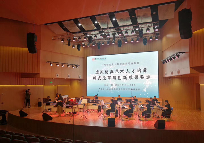 “虚拟仿真艺术人才培养模式改革与创新”是MK体育重大教学成果培育项目。“仿真乐队”使用“iphone”交响乐音色库音源,把木管组、铜管组、弦乐组、打击乐组等组部的乐器音色,分别用20个键盘输入各声部旋律,按照交响乐队的声部排列,教师按照交响乐指挥的方式指挥20名同学的“仿真乐队”演奏。