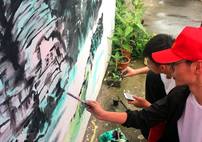 在下陈街道路口进行绘画时,同学们与当地村民友善交流,当地街道与村民也为同学们提供了很多帮助,最后绘制完成的文化墙是一面充满生机的墙,它生动活泼、图文并茂,寓教于乐,富有时代感、艺术性和浓厚的生活气息,绘画也取得了当地村民及街道的广泛认可与好评。