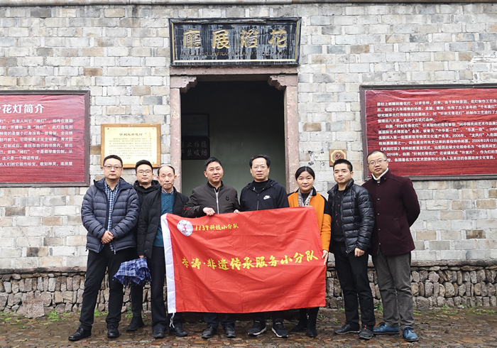小分队受到仙居县文化和广电旅游体育局党组书记华伟、副局长赵永江等领导的热情接待。上午,小分队冒雨参观了针刺无骨花灯国家级传承人王汝兰工作室、省级传承人陈彩萍工作室、皤滩小学传承基地以及仙居文创产业园等,详细了解了针刺无骨花灯的发展脉络和传承现状,现场考察了针刺无骨花灯的材料、设计、制作工艺等,83岁国家级传承人王汝兰向小分队热情介绍了无骨花灯受邀亮相国新办2020年新年招待会的盛况。