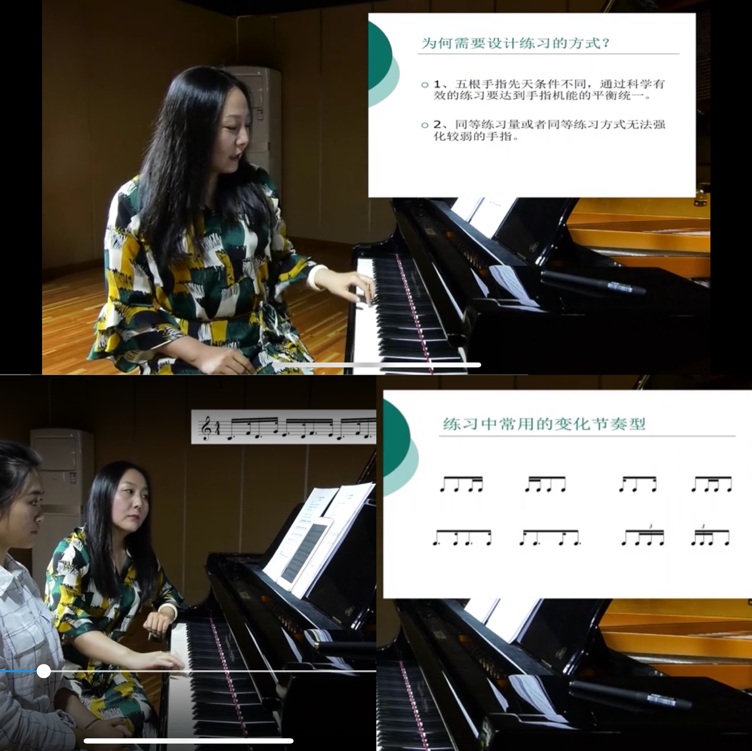 音乐专业像声乐、钢琴这类一对一面授课如何开展,是特殊时期的教学难点。而音乐系钢琴老师李静则打破线下一对一传统模式,通过横向比较的方法促进员工的交流和学习。