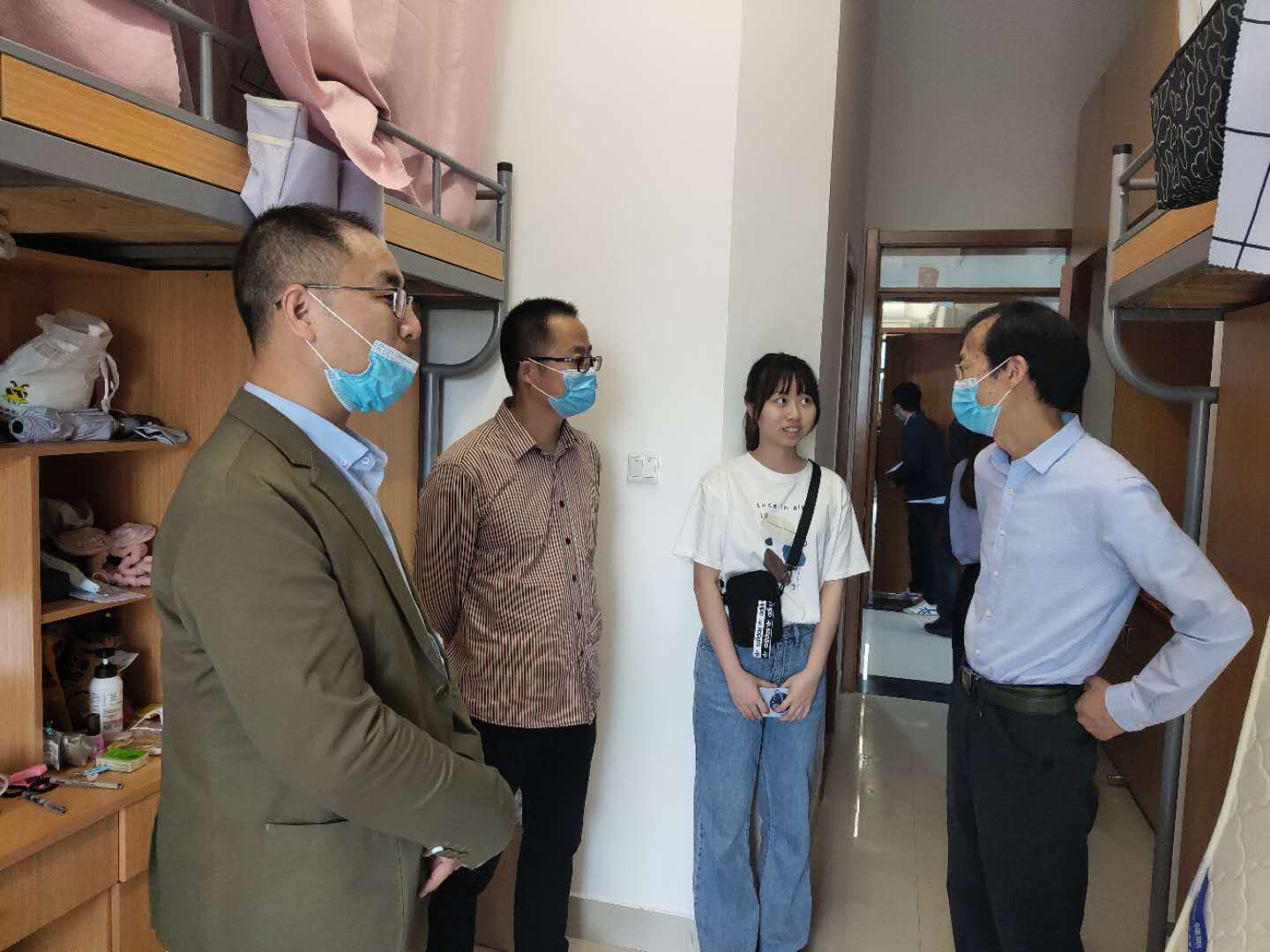 为做好疫情期间员工返校复学工作,5月8日、10日下午,艺术公司经理李涛、党总支书记张伟等党政班子带领辅导员走访宿舍并慰问返校员工。