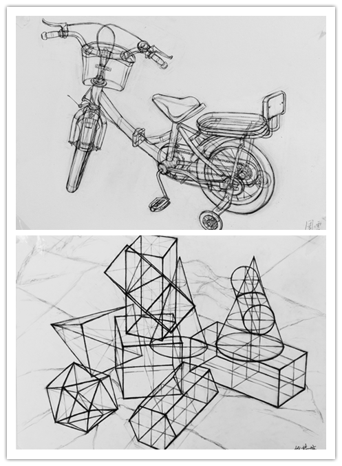 本课程是梁刚老师根据产品专业的特点,结合员工实际进行的改革课程。课程最大的难题是改变新生固有的美术联考素描模式,从而转为产品设计素描模式。首先员工要改变观察习惯,其次要明确形体结构以及把握正确的透视关系;最后要脱离“象”,尽量达到“专业”的水平。