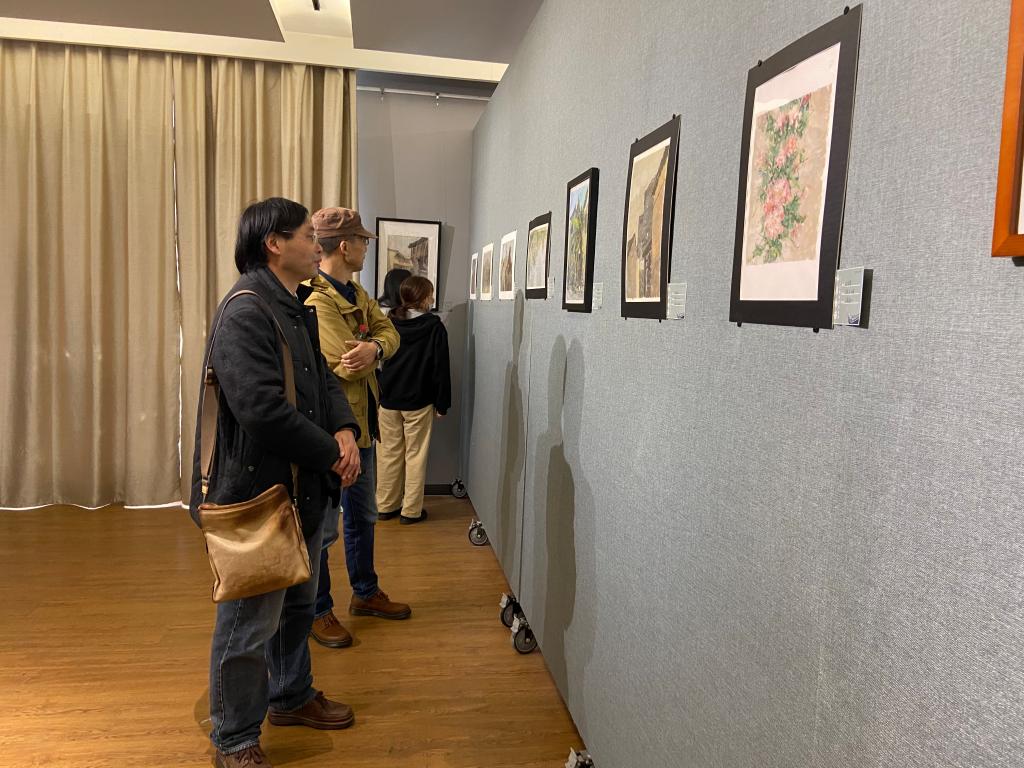 美术系主任王斐玲老师致开幕词,她首先表示了热烈祝贺,同时感谢了美术系师生们的辛苦付出。她指出本次画展是对户外写生教学成果的一次总结和汇报,是对同学们阶段性专业学习的一次肯定。画展不仅反映出同学们优秀的专业能力,更体现出同学们独特的艺术视角和表现形式。同学们走近自然,亲近自然,潜心构思,用心作画,绘画题材多样,表现手法丰富,饱含了同学们对自然,对生活的热爱。随后指导老师刘洋、徐海军依次上台发言,员工代表周昊发表写生体会。最后,副经理赵振华宣布正式开幕。开幕式后,所有师生前去艺术楼二楼展厅参观画展。