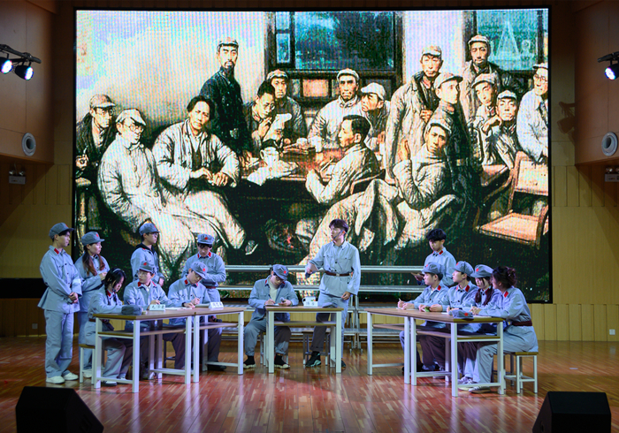 经前期发动、班级精心准备,共有20个班级团支部的节目参与此次活动。随着19美术1班的小品《开天辟地》登上舞台,团支部文化PK赛气氛正式点燃,拉响了中华民族伟大的复兴篇章,带领我们回到那个民族觉醒的年代。20产品1班的话剧《破晓》,呈现了引领青年前进的五四青年的风骨与激昂,演绎了五四运动的燎原星火和青年人的鲜活形象。19视传1班的集体朗诵《不忘初心,牢记使命,我们永远在路上》,讲述了一代代共产党人历经沧桑的风雨兼程;18视传1班带来了《唱支山歌给党听》,歌颂带领我们走向光明胜利的中国共产党;18产品2班的《垦荒队员之歌》,唱响了催人奋进的大陈岛垦荒岁月和奋斗历史;19音乐2班的情景剧《红色的回忆》,以生命与不屈谱写慷慨悲壮的英雄篇章;19音乐1班的合唱《唱支‘合唱’给党听》让大家在歌声中看到江流奔腾、稻浪飘香的祖国,也为团支部文化活动画上了圆满的句号。歌舞、人物与灯光交织,舞台热闹非凡,青春姿态尽显其中,精彩纷呈的节目不时获得现场观众的热烈掌声。