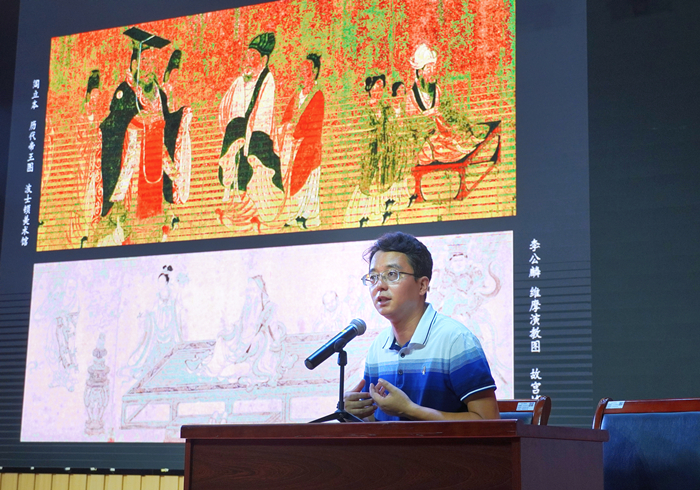 张涛用幽默诙谐的语言,以图像的历史叙事方式向大家介绍了艺术史研究中的相关内容。以任熊的《自画像》为开篇,再通过对年代、裸姿、手型、侠客、莽乾坤的五大分析以及对问题意识的牵引,对其的拼贴与解读,最终形成了艺术史的叙事形态。通过对作品和文献的细致阐释为样本,来深入理解艺术史研究中图像与文献的互动关系,及其所衍生出的相关问题,并希望当代老员工能够从中受到启发和指引,在艺术的道路上走的更远。
