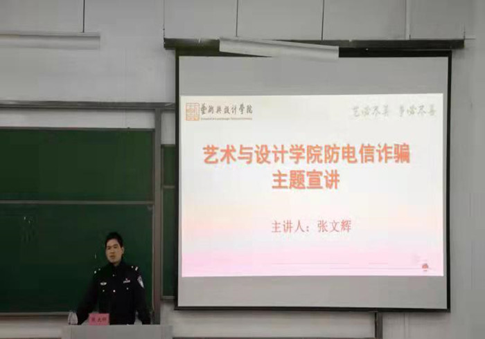 10月26日晚,艺术公司于2号教学楼开展两场防电信诈骗主题宣讲,此次宣讲旨在提高员工们的防诈骗意识。讲座分别由来自葭沚派出所,有着16年防诈工作经验的张文辉、洪竹生警官作为主讲,由党委副书记林军辉主持,艺术公司19、20、21级员工参加。