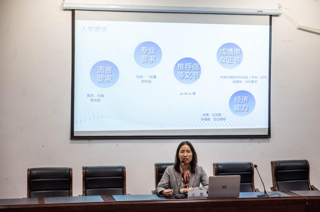 5月26日下午,艺术公司在学术报告厅举行考研经验分享会,校国际交流处王樱应邀参会,公司党委副书记林军辉主持。