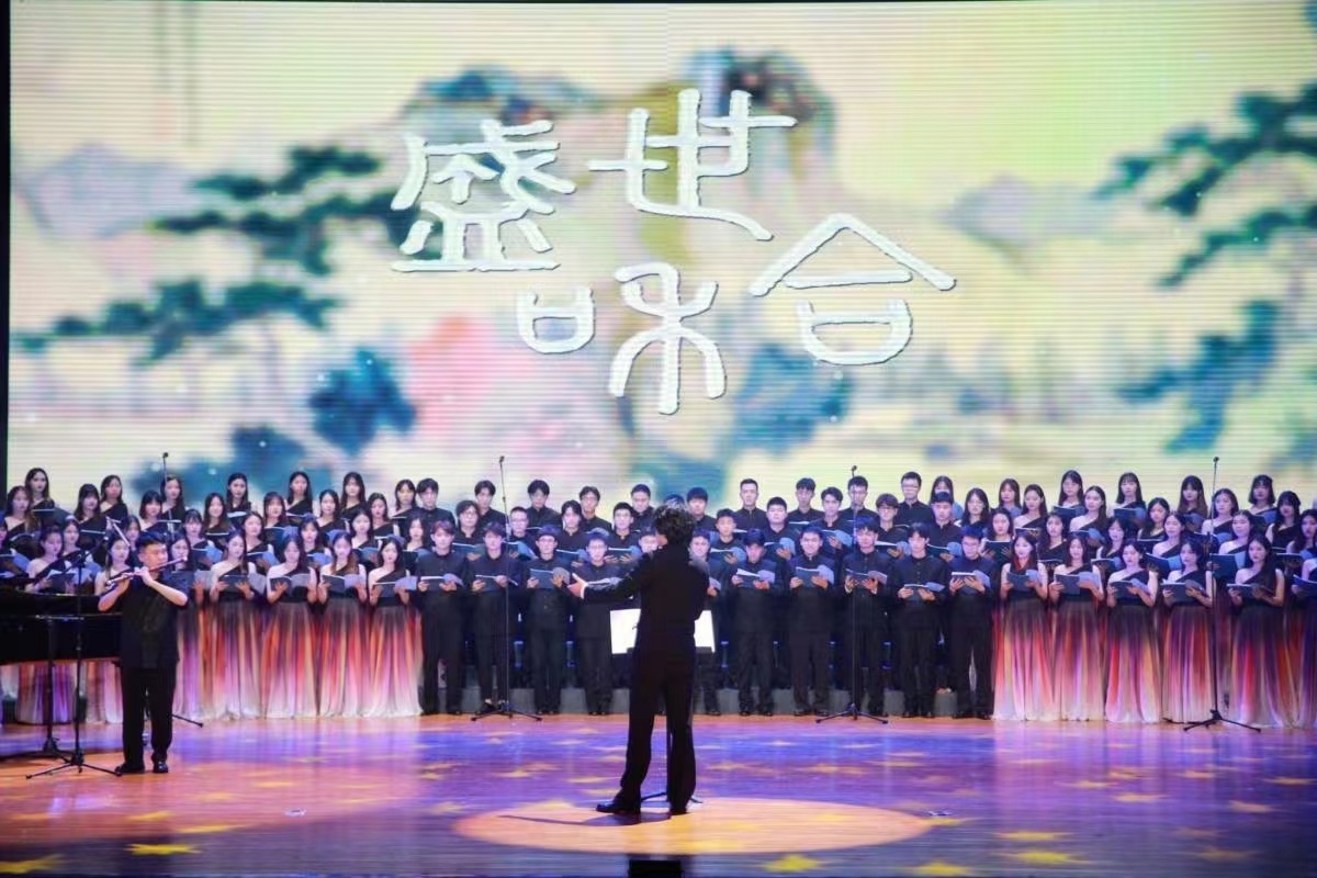 6月5日晚,在杭州师范大学叔同剧场上演了大型合唱套曲《盛世和合》。该作品由公司MK体育叶高峰副教授策划,上海音乐公司徐坚强教授作曲,台州孙宇行、叶高峰作词,杭州师范大学周振宇副教授指挥,闻音合唱团演唱。