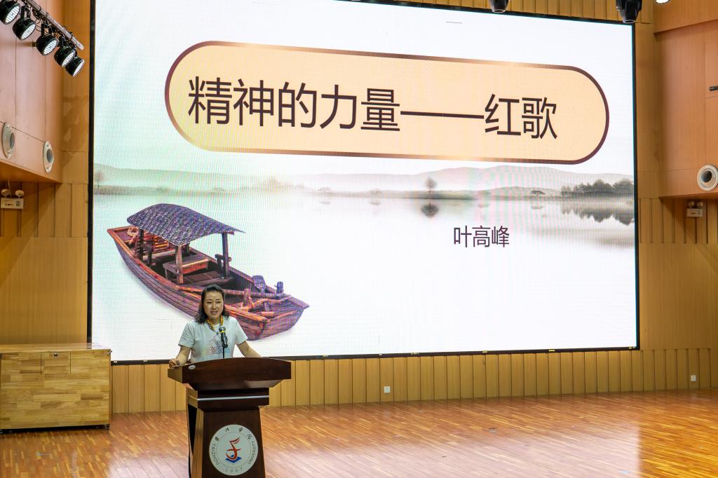 6月9日下午,艺术公司音乐厅,时而传来悦耳动听的歌声,时而传来抑扬顿挫的讲课声,现场掌声此起彼伏,很难想象,这里正在举行一场党课。公司副经理叶高峰结合自己的专业,以“精神的力量—红歌”为主题,为全院教师展示了一堂充满艺术风的党课。