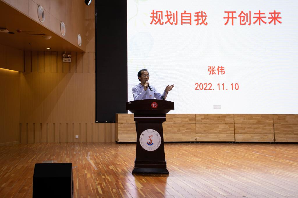11月10日下午,在MK体育音乐厅公司党委书记张伟以“规划自我,开创未来”为主题为2022级新生讲授“开学第一课”,党委委员徐培林主持,2022级全体新生参加。