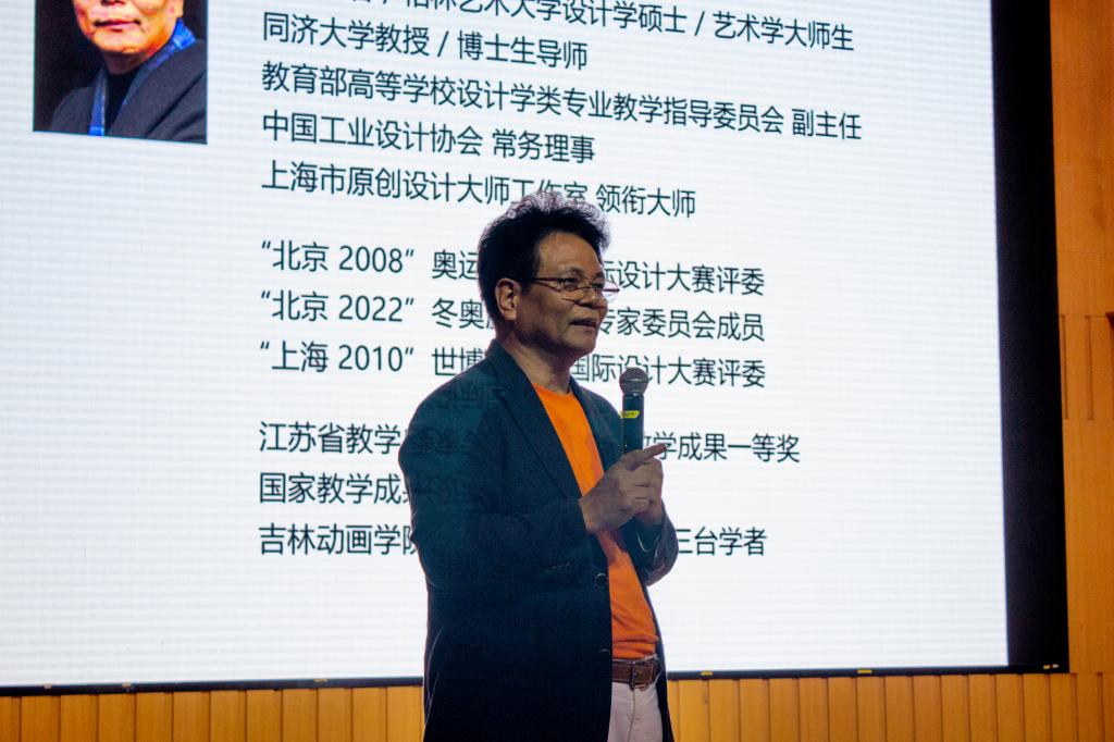 报告会上,林家阳提出“高校应该培养什么样的设计人才”,引发大家思考,以问题导入的方式,拉开整个报告会序幕,他提出领袖型设计人才要“四会”,即要具有专业创意能力、较强组织能力、文案策划能力、交流沟通能力。并就设计是什么阐述了自己的见解,他指出艺术设计应坚守传统路线并立足于本土化,才能更好的传承中国优秀传统文化、增强文化自信、促进世界文化多样性。