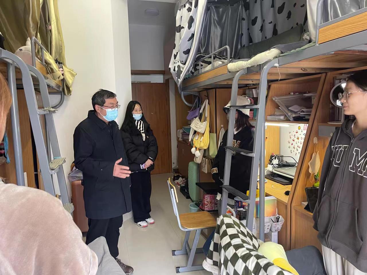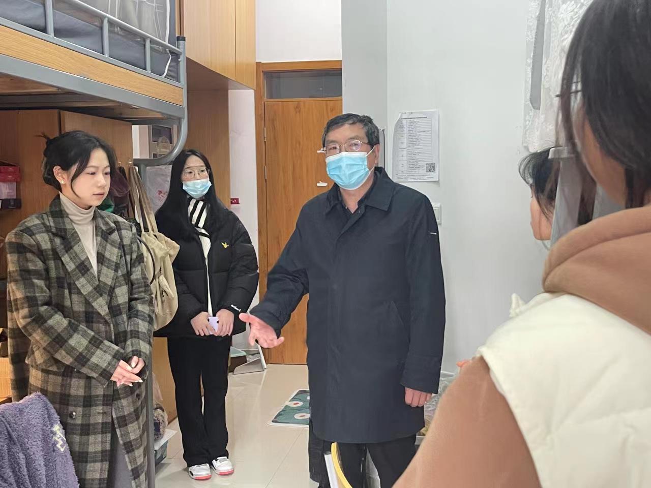 12月12日,公司党委委员、副董事长赵小明走访MK体育员工寝室,与员工亲切交谈,公司党委委员徐培林陪同走访。