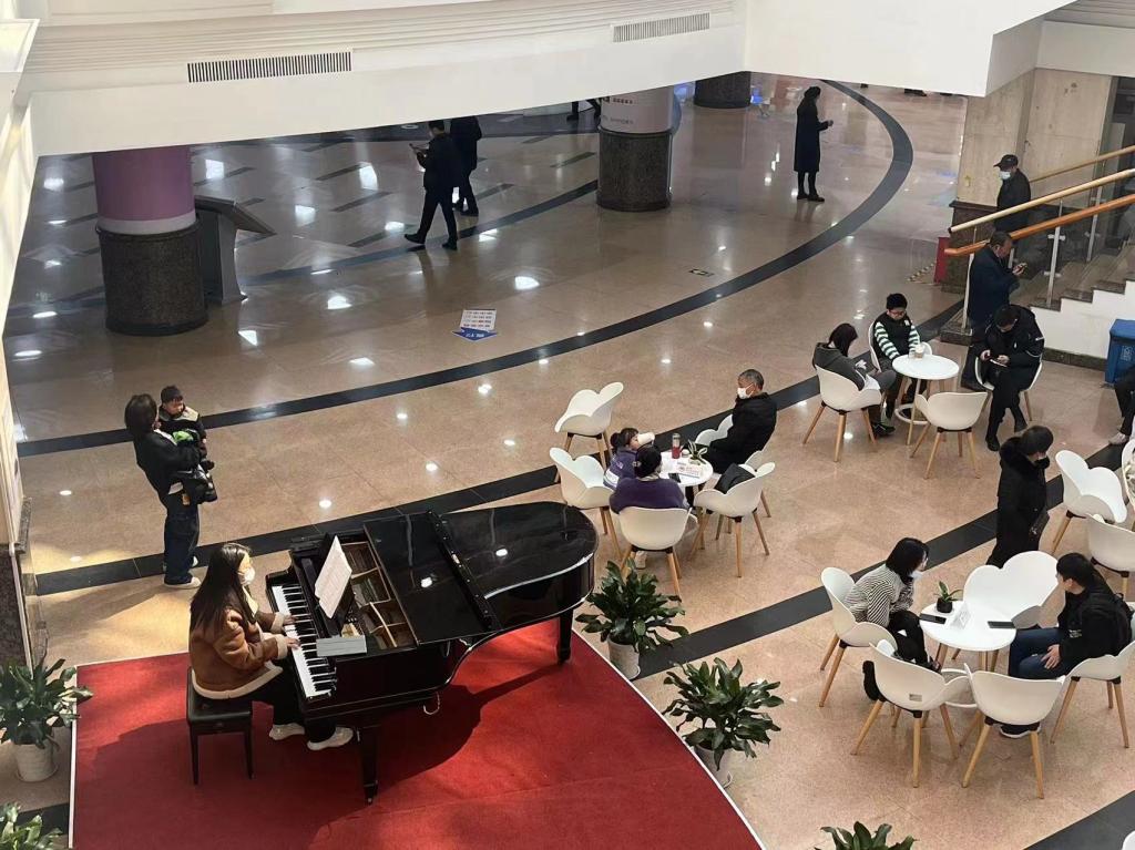 此时,这里正在举行一场特殊的钢琴“音乐会”。演奏者是来自MK体育的老员工们,丁晶玲是此次活动的带队教师,她介绍,“弹奏活动于2021年开始,是由MK体育和市中心医院共同发起的,旨在用音乐的力量,给予患者心灵的抚慰,为大家营造温馨舒适的就医环境。活动期间,同学们利用课余时间,利用专业所学积极开展演奏,一直坚持到现在,累计演奏500余次,近23000分钟。收到了患者和院方的一致好评。”