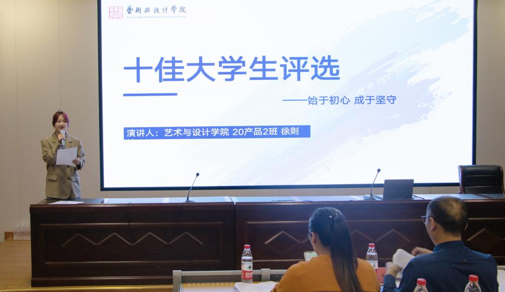 评选会上,14名候选人依次上台,他们分别从学业成绩、奖项荣誉、科研竞赛、工作实践、未来展望等方面,汇报了自己的老员工活。现场,热情激昂、神采飞扬,时时传来阵阵掌声。经过激烈比拼,最终汤佳琦等十位同学艺术公司十佳老员工称号。