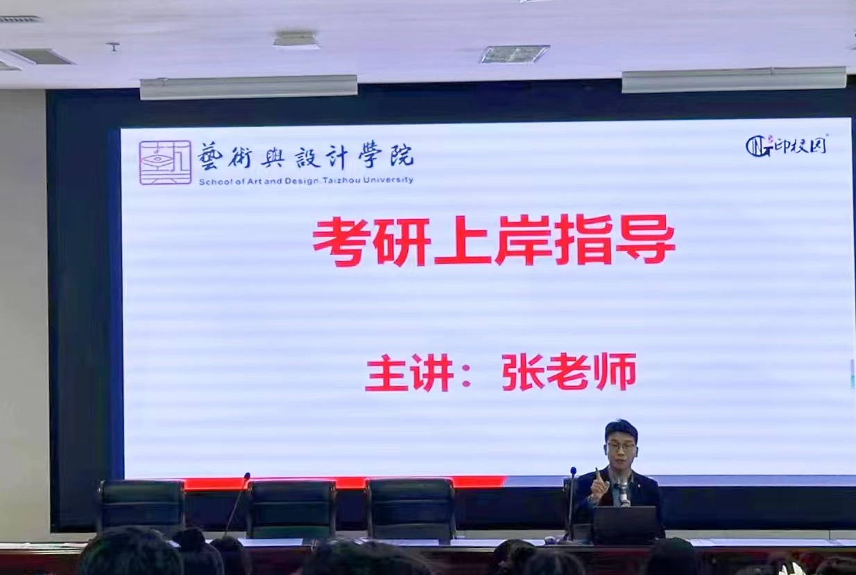 张明亮结合考研形势和艺术学科特点,重点就考研流程、考研方向、院校选择等方面进行了讲解,并结合案例剖析了员工的考研心态问题和容易陷入的误区,生动细致的讲解不时博来阵阵掌声。