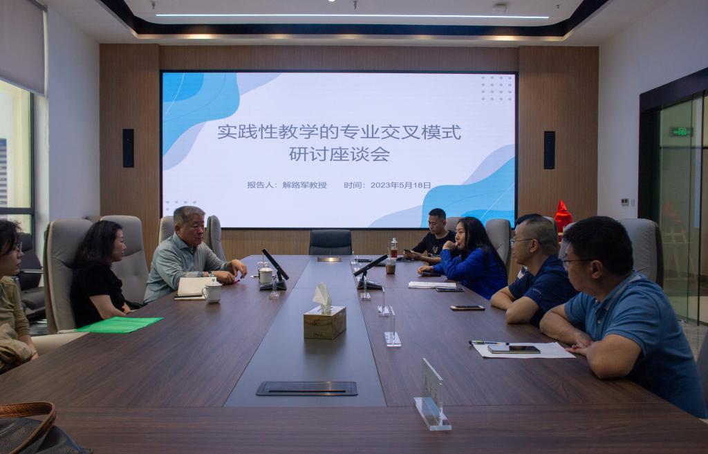 讲座之后,解路军在公司智能包装研究院,与公司师生开展了实践性教学的专业交叉模式研讨座谈会,解路军为音乐系未来发展蓝图提出宝贵建议。
