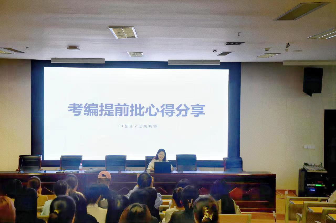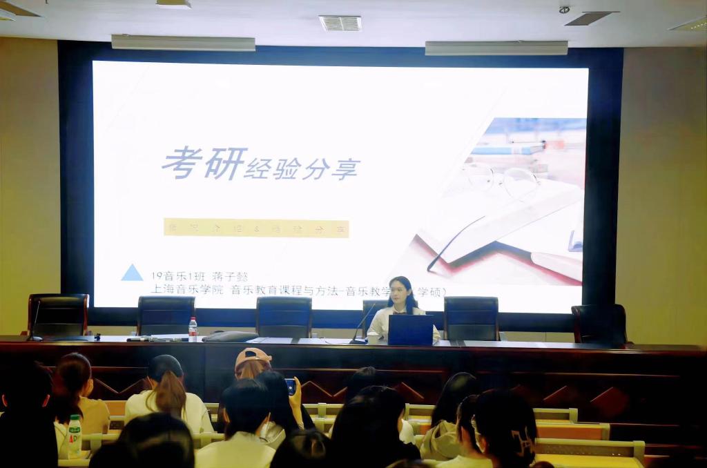 会上,19级音乐系成功考编同学的朱晓婷从考编的提前批信息、前期准备、面试技巧三方面进行分析,强调早做准备,备考全面、把握每一次提高自身教学能力的机会,另外提醒同学们注意面试的穿搭礼仪及语气。成功考上上海音乐公司研究生的蒋子懿根据自身情况为大家推荐了复习技巧和实用软件,表示要以自己的目标公司为基础进行规划学习,保持良好心态。成功考上浙江音乐公司研究生的谭闰之指出同学们不要跟风考研,拒绝员工思维、被动思维,点明“研究生”应有自主研究、自发学习能力。