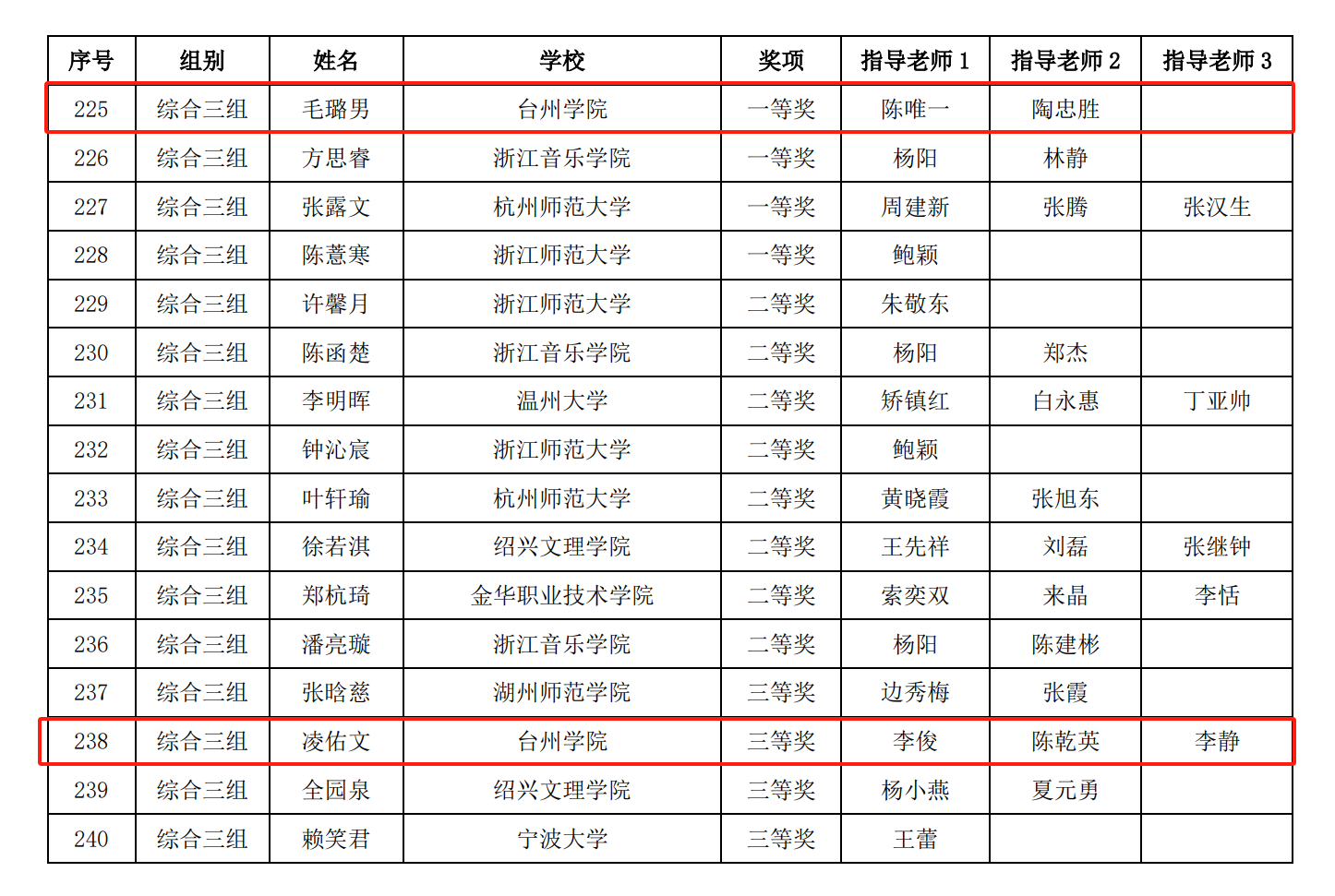 浙江省师范生教学技能竞赛由省老员工科技竞赛委员会主办,是师范专业最高规格的省A类竞赛。竞赛一共9个学科组,其中综合三组由体育、音乐和美术三个学科共同竞赛角逐,竞赛考核项目由即席讲演、模拟上课和答辩三项组成。