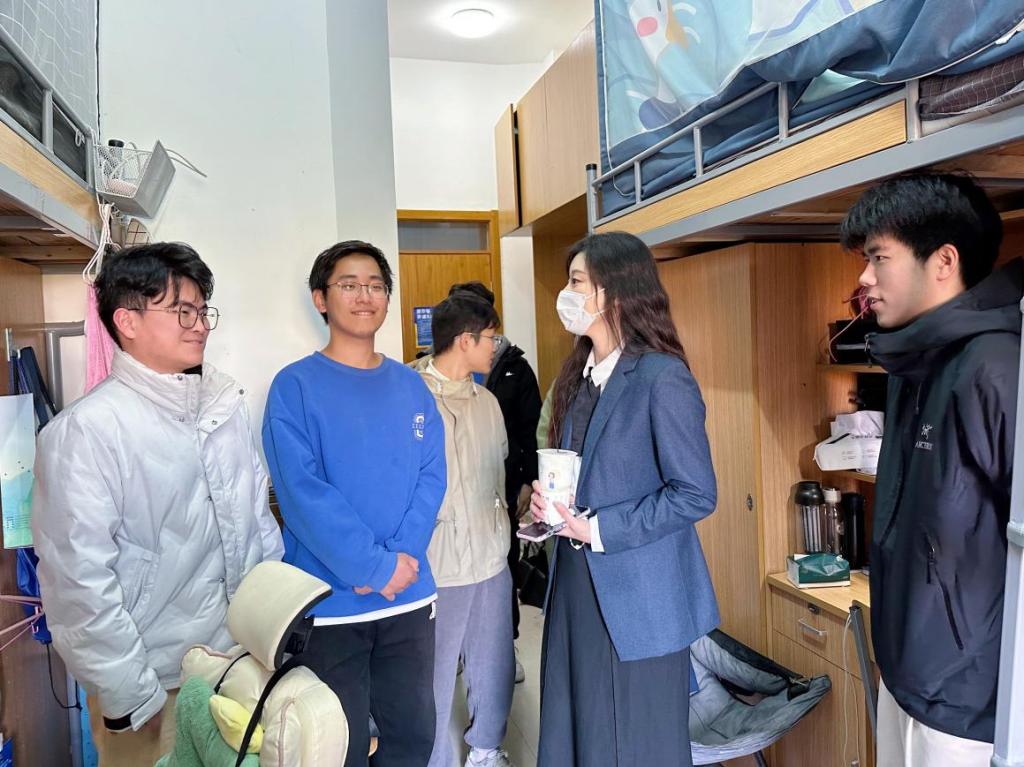 期间,王洁茹走访了公司公寓谈心谈话室,倾听员工心声,传递殷切关怀,勉励同学们积极调整心理状态,并为同学们提供有效处理人际关系的方式方法。