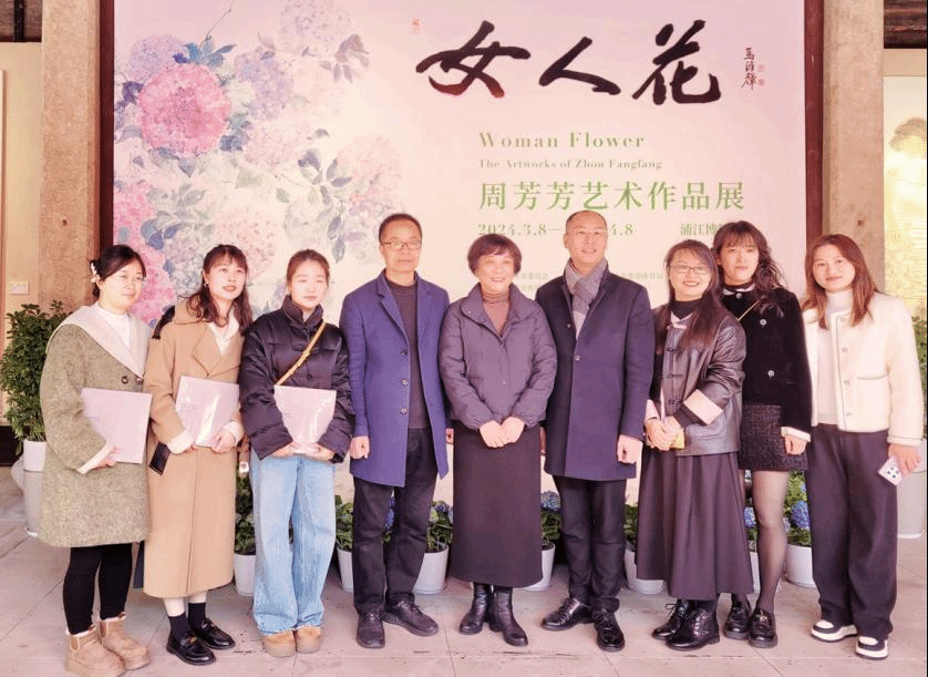 日前,公司00级美术教育专业员工周芳芳的“女人花”个人艺术作品展在浙江金华浦江博物馆成功举办,公司副经理赵振华、人文公司副书记林军辉、院退休老领导金灵秋及多位员工到场观展。