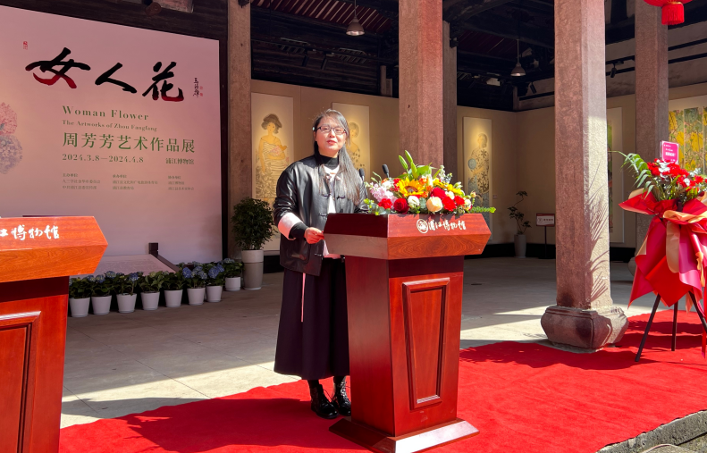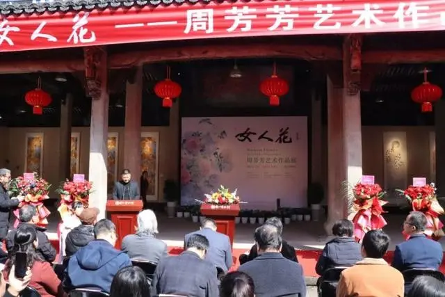 此次展览由九三学社金华市委员会、中共浦江县委宣传部主办,浦江县文化和广电旅游体育局、浦江县教育局承办,浦江博物馆、浦江县美术家协会协办,共展出周芳芳个人绘画作品100余幅、画瓷作品20余件,展现出一个优良的浦江书画之乡的女书画家艺术群体。周芳芳为中国美术家协会会员、浙江省书法家协会会员、九三学社社员,她以独特的视角认识生活,用认识生活的能力表达艺术。展会上,上海市美术家协会副主席陈琪对其作品评价:“她吸收元青花传统的连续纹样的艺术样式,用现代构图构成的现代审美的艺术表现效果,让各种瓷器的造型在她笔下鲜活起来,呈现的艺术效果让人耳目一新。”