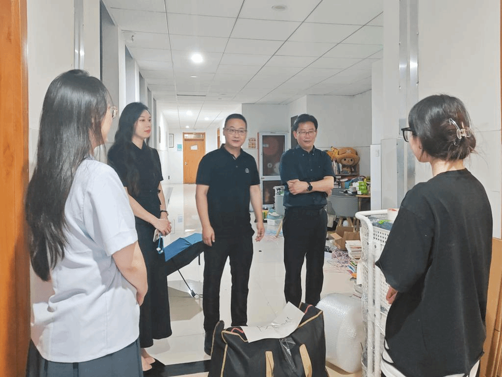 走访途中,柯胜海一行遇到正在搬运行李的同学们,大家驻足交谈。一声声关心的询问,一句句亲切的交流,都体现了老师们对毕业生的关怀,时刻让毕业生们深深地感受到艺术公司的温暖。