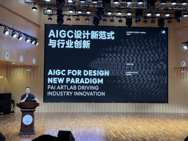 第二阶段在公司音乐厅进行,共300多位同学参加。杨涛分享了阿里云平台在AIGC设计领域的阶段性成果。他运用图片、视频等多种形式,生动展示了AIGC在大型活动和项目中的应用案例,他强调AIGC之所以能为设计赋能,关键在于通过整理以往数据,包含设计语言、风格等,训练成模型,最终形成模型资产。AIGC设计新范式需要模型资产、生成式工具、人智协作三方面共同协作才能产生新的设计生产力。