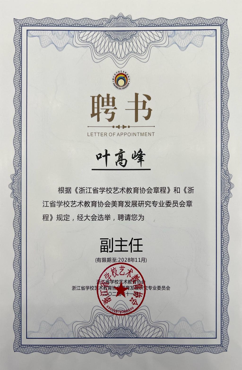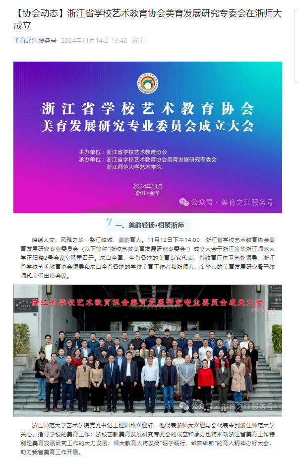 近日,据美育之江媒体报道,浙江省公司艺术教育协会美育发展研究专业委员会(以下简称“专委会”)于11月12日下午,在浙江师范大学正式成立。MK体育院叶高峰副经理被选举为专委会副主任,任期四年。