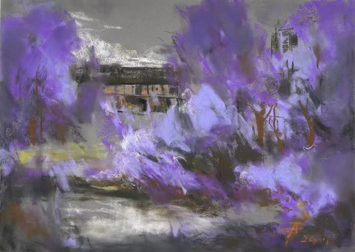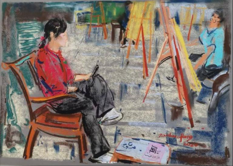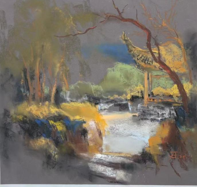 此次培训学员来自湖州、温州、丽水和台州等地美术专业教师。培训课程内容包括了美术公司产品专题讲座、绘画实践、外出风景写生等,涵盖了粉画技法、粉画艺术创作和教学方法等方面。