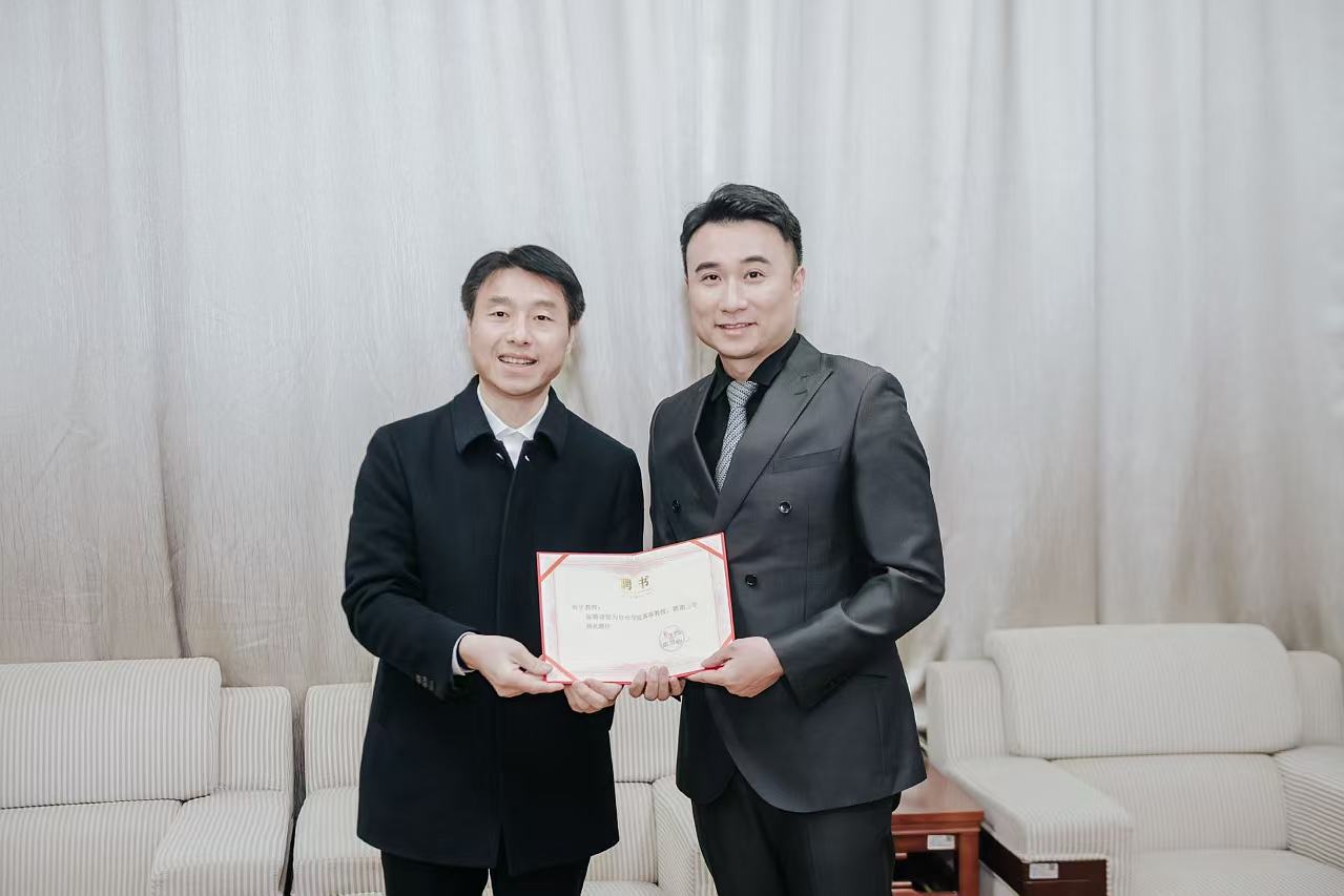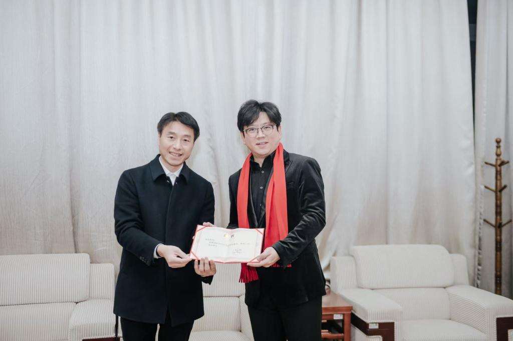12月31日,公司举行客座教授聘任仪式,浙江音乐公司严圣民教授、郑培钦教授,浙江省歌舞剧院歌唱家高宇、满添被聘任为公司客座教授,副董事长、党委委员李建军出席并颁发聘书。
