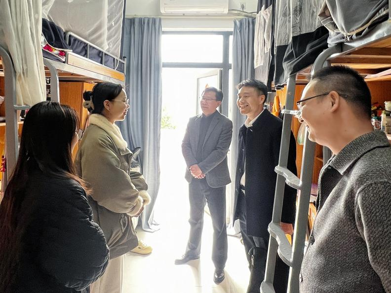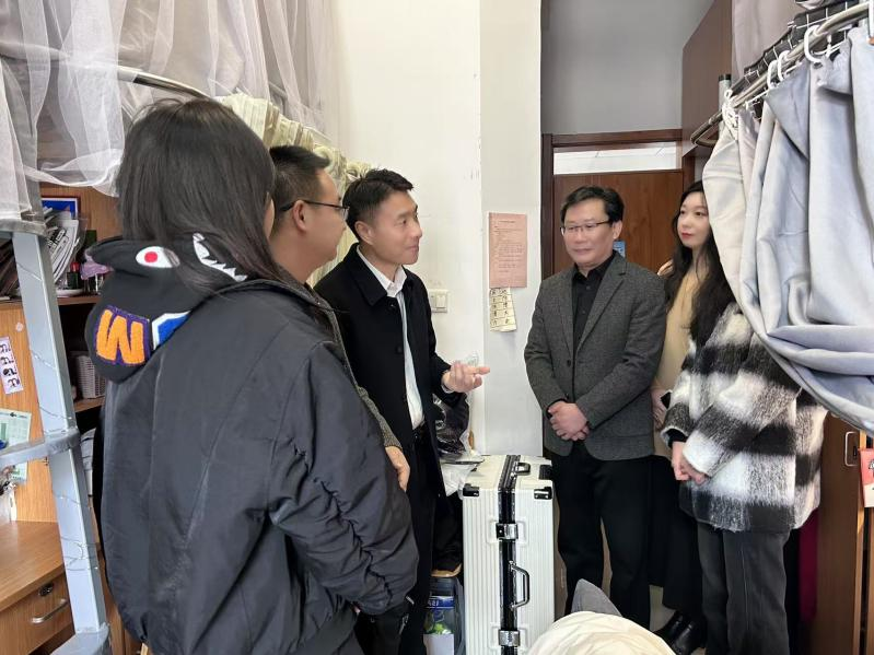 “假期生活如何?”“大家都是哪个年级的员工?”“对于自己未来的就业有何打算?”......走访过程中,李建军以亲切的话语拉近距离,详细的询问了同学们寒假期间的生活状况及开学返校后的学习规划,热情地与同学们一同“话家常”“谈规划”,对大家的学习计划和职业目标表示认可的同时,提出要充分学习、利用DeepseeK、Kimi、文心一言等人工智能软件辅助自身提高学习效率,鼓励同学们新学期要振奋精神、努力完成毕业、就业等相关事宜,踏实走好毕业生最后一公里。