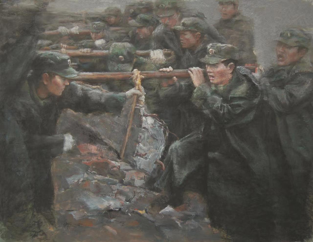 《凝聚的力量》粉画110cm×140cm,第九届全国水彩粉画作品展览,作者:王斐玲
